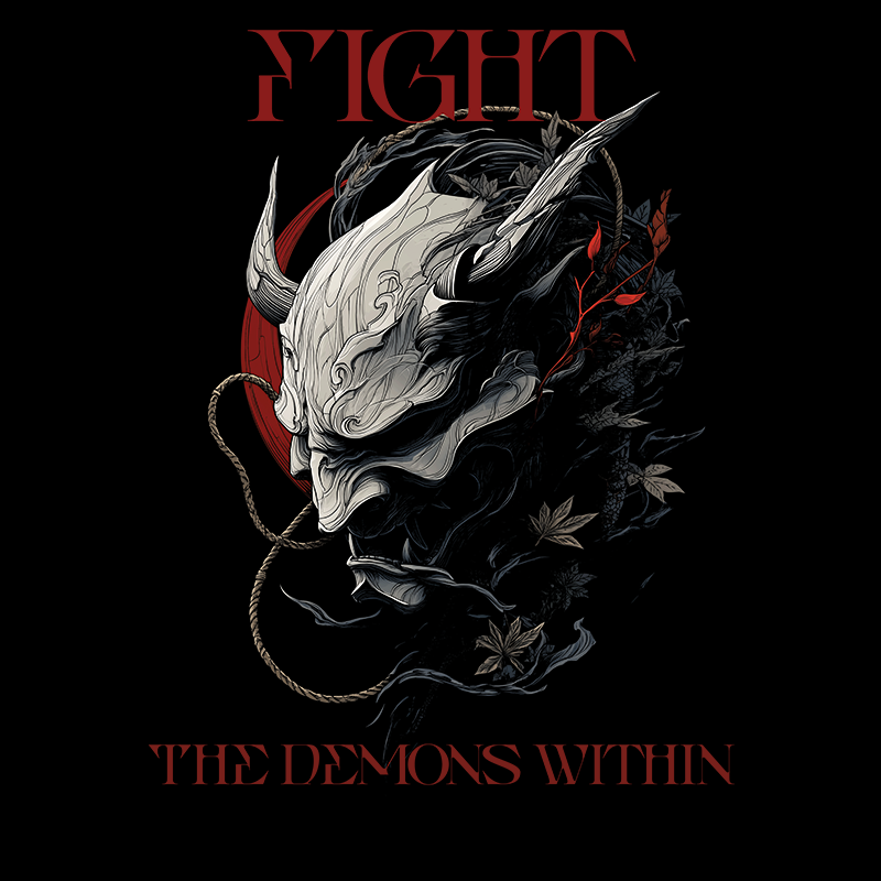 This haunting design channels the quiet war that rages inside — a stylized demon mask entwined in smoke, shadow, and thought.