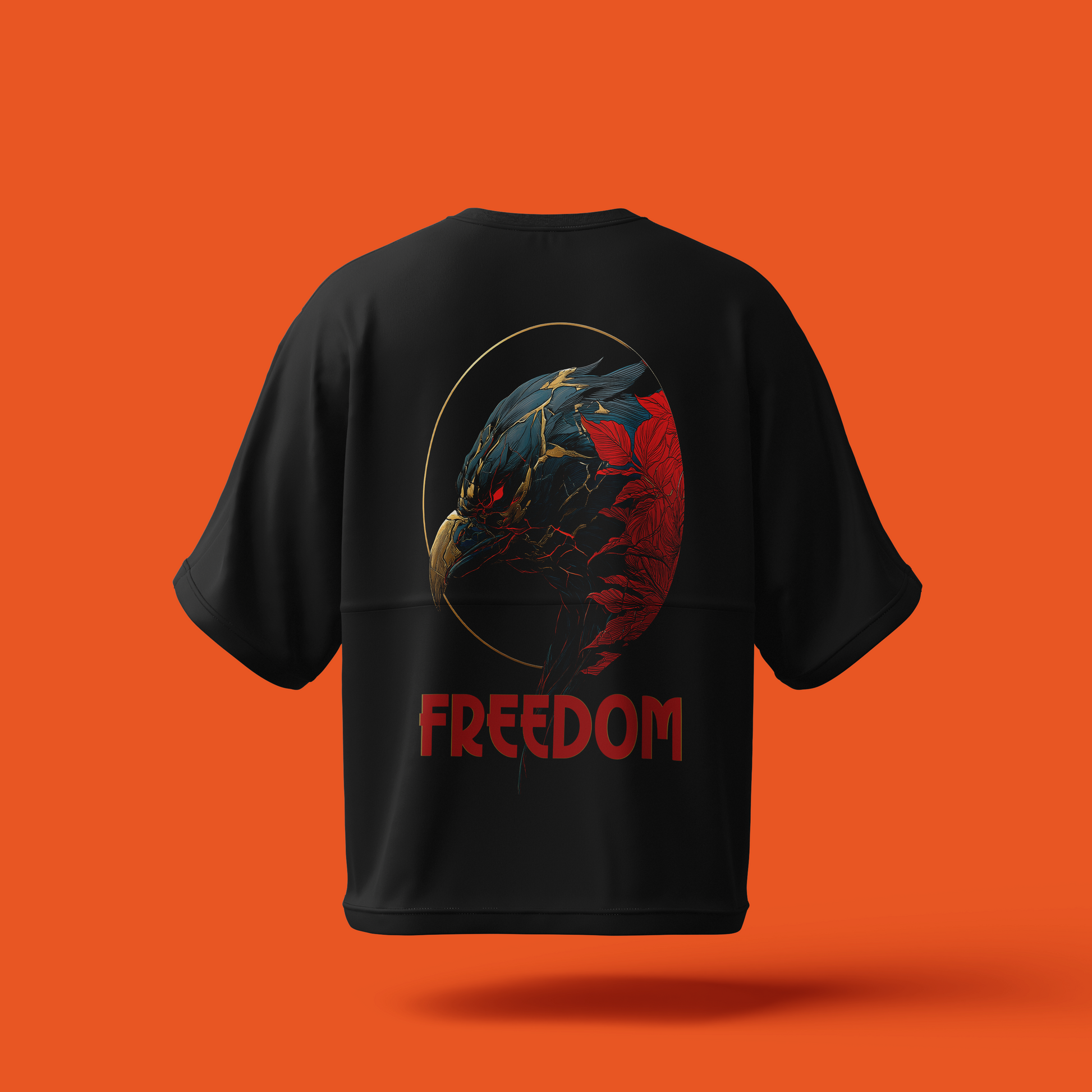This bold design fuses power and elegance through a stylized eagle — part forged in gold, part cloaked in crimson leaves — symbolizing strength, rebirth, and untamed spirit.