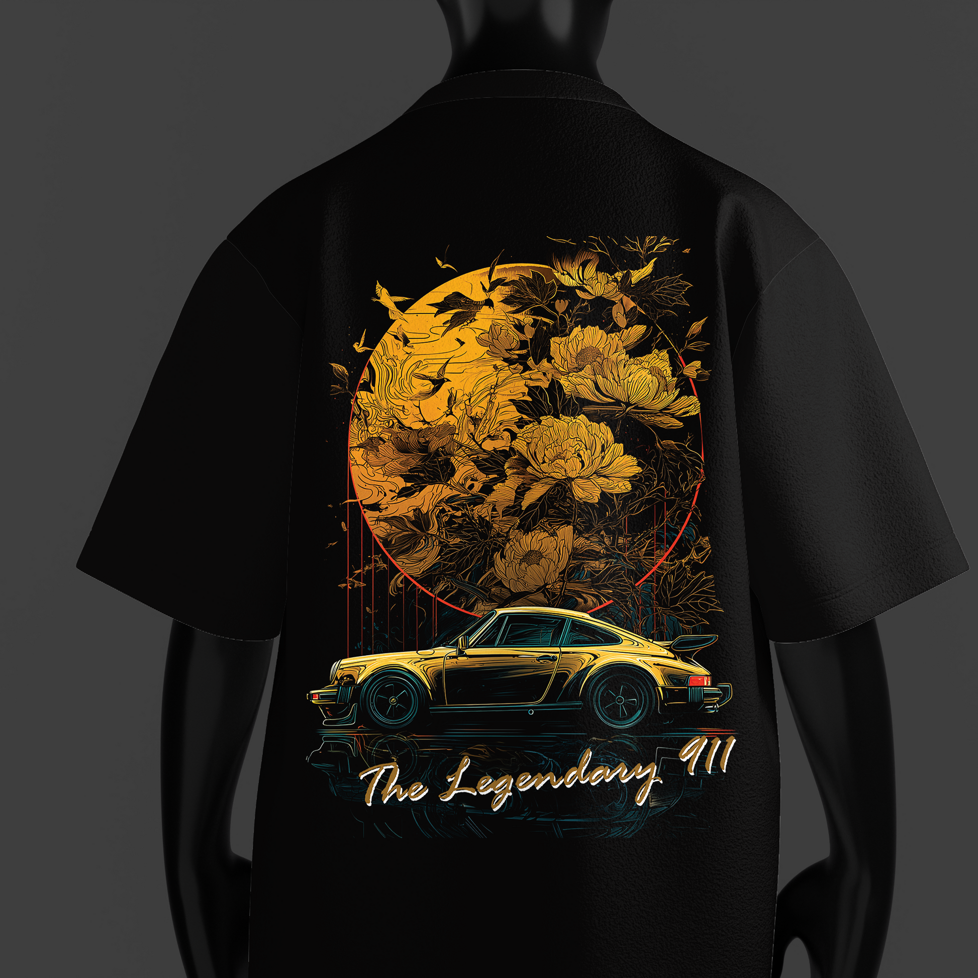 For the lovers of speed and style — this tee captures the timeless silhouette of the Porsche 911, wrapped in a golden floral explosion that feels straight out of a neo-Japanese scroll.
